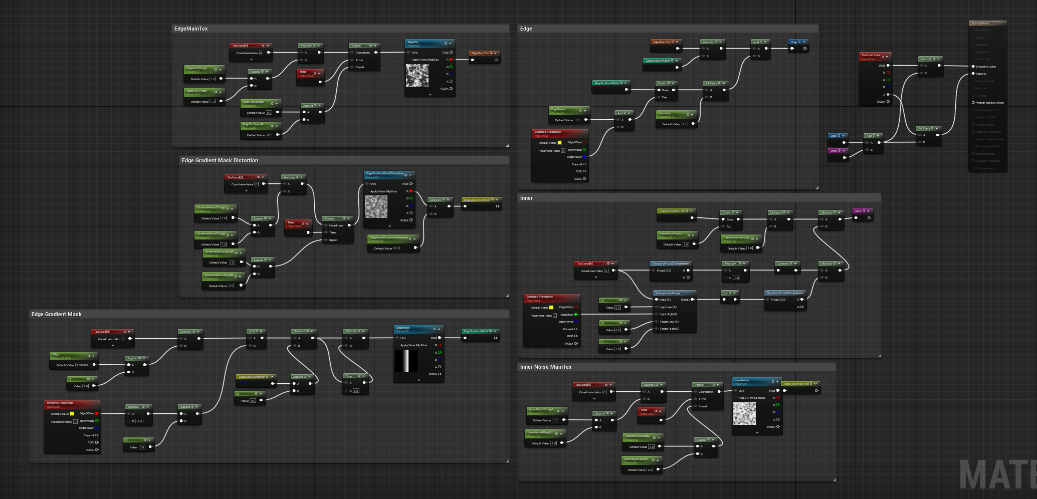 Material Animation: Crafted uv animation with the custom mesh in the material, giving the player a sense of safety.