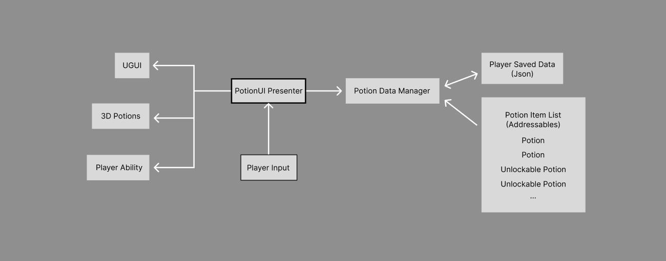 Architected a highly scalable, data-driven Potion and Crafting system using Unity ScriptableObjects and Addressables.